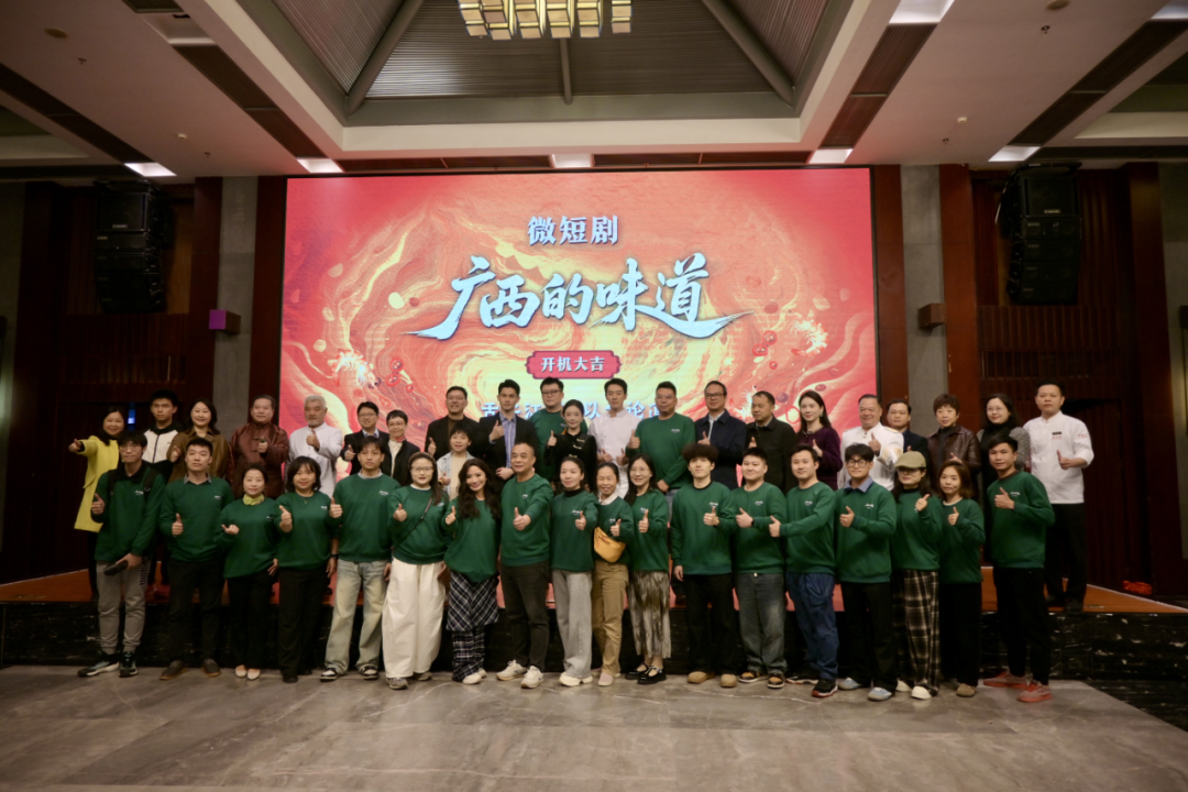 11月20日上午,由自治区广电局、南宁市融媒体中心联合出品,广西人民出版社、广西职业技术学院联合摄制的微短剧《广西的味道》在南宁举行开机仪式。