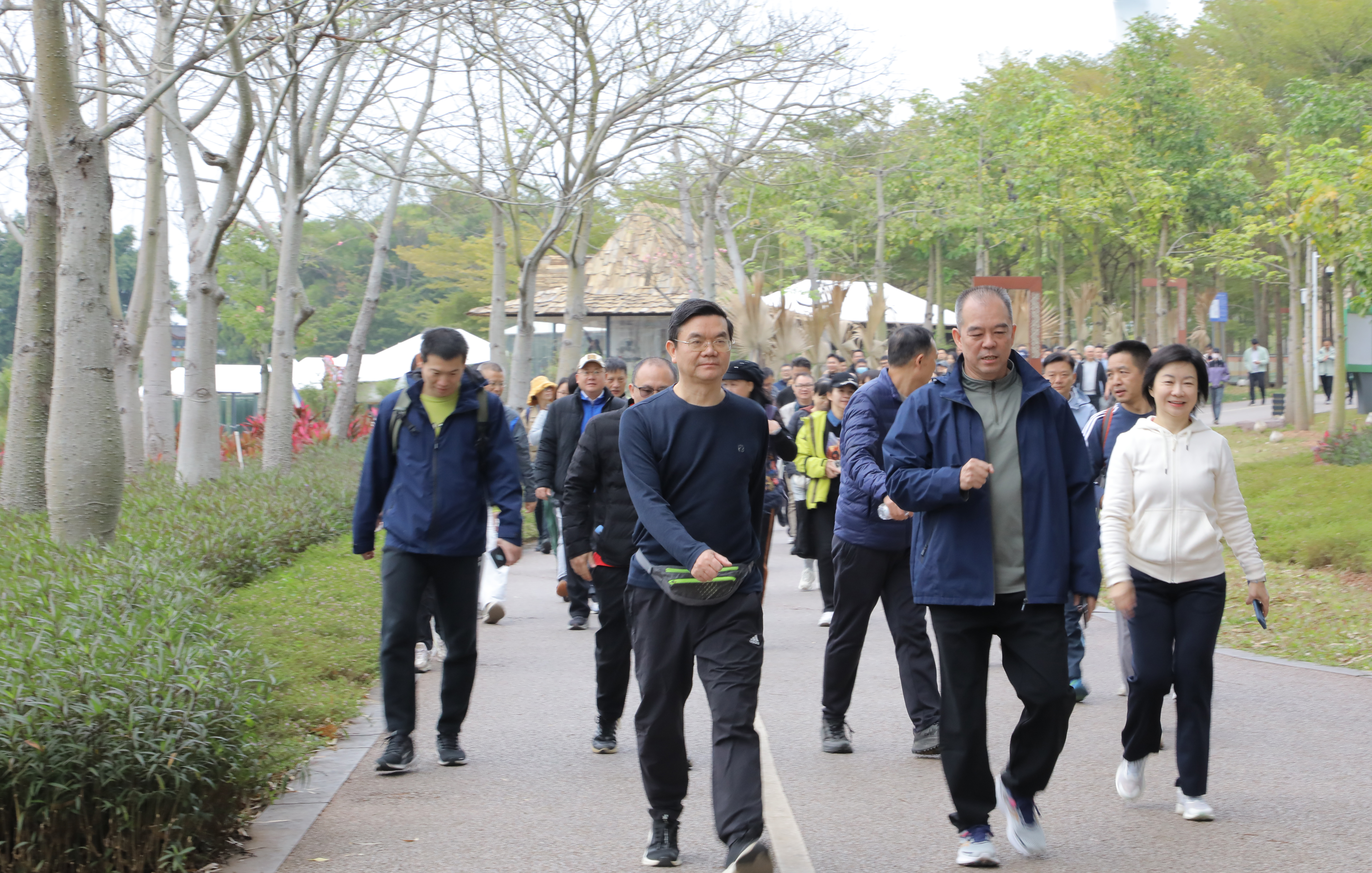 系统干部职工在健步走途中