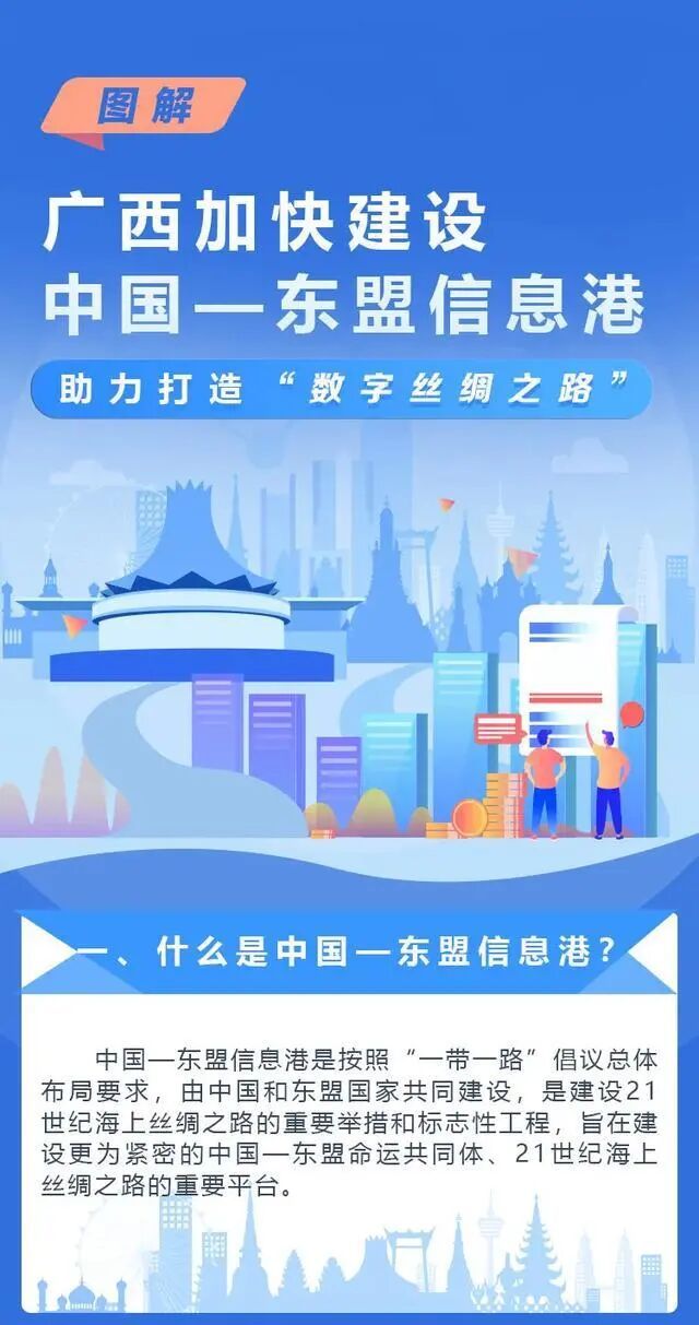 一是搭建“中国-东盟信息港”,共建“数字丝绸之路”。 中国—东盟信息港由中国和东盟共同建设,以深化网络互联、信息互通、合作互利为基本内容。旨在通过与“一带一路”沿线国家和地区共建信息基础设施,推动信息共享,促进信息技术合作,推进互联网经贸服务和加强人文交流,共同发展更广范围、更宽领域、更深层次的信息经济,携手共建政治互信、经济融合、文化包容的网络空间命运共同体。