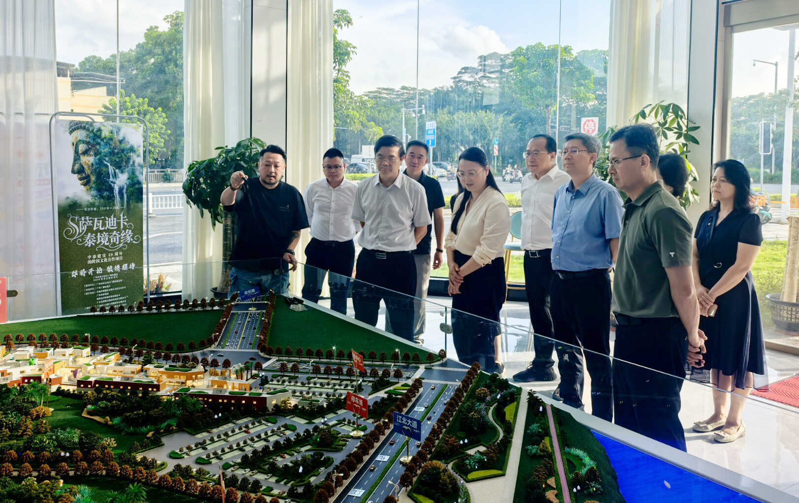 调研组一行在横店·玖点片场所在的北投·明月荟调研。