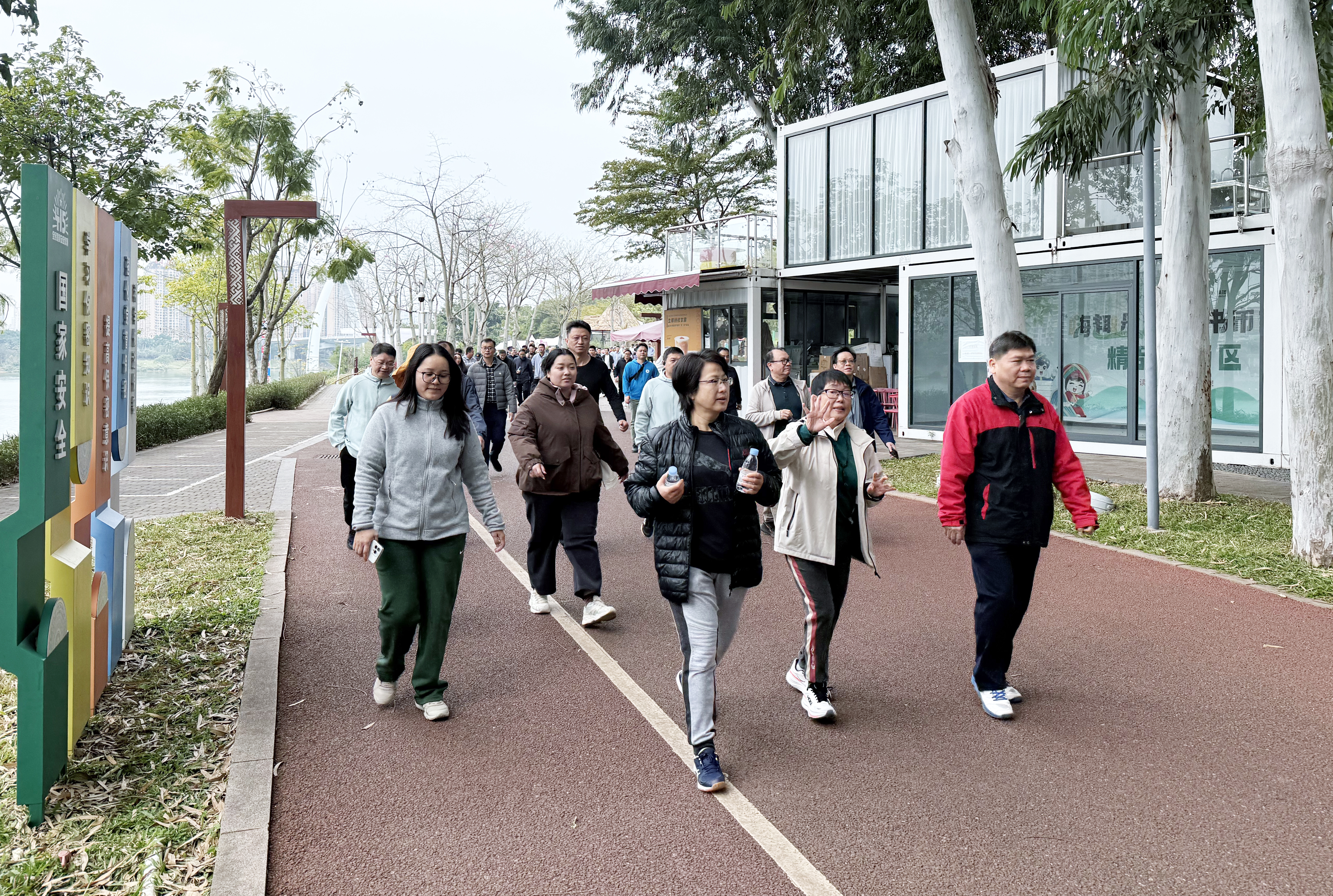 健步走路线从柳沙体育公园出发,至孔庙旅游码头结束,全程约8公里。活动特别设置了跑团环节,由20名干部职工组成的跑团分组出发,生动诠释“运动促进健康”理念,现场氛围轻松热烈。